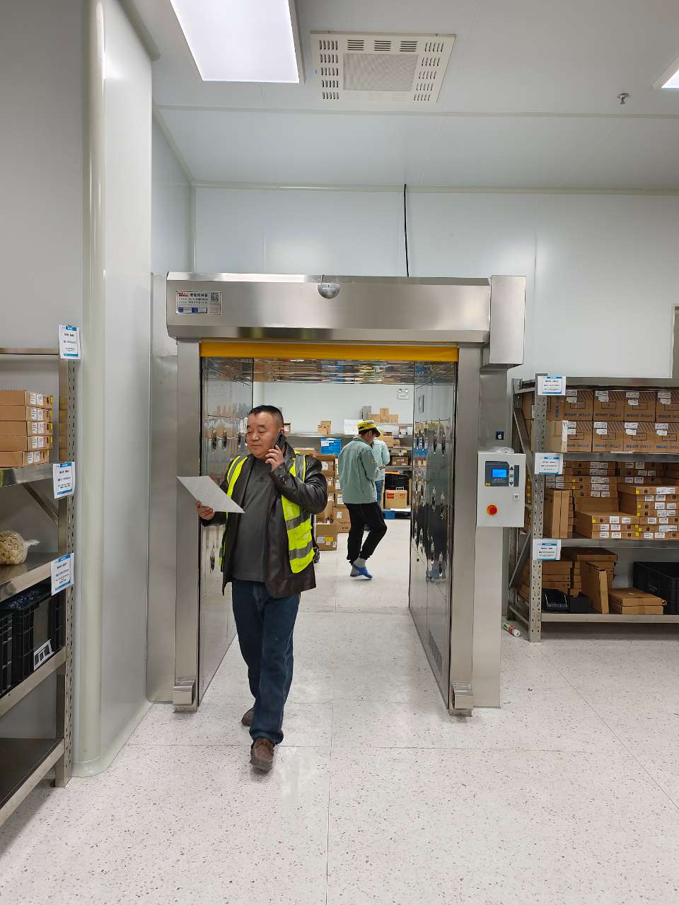 (1)風淋室通電后,兩側門電子互鎖,一側門未完全關閉時,嚴禁強行打開另一側門。